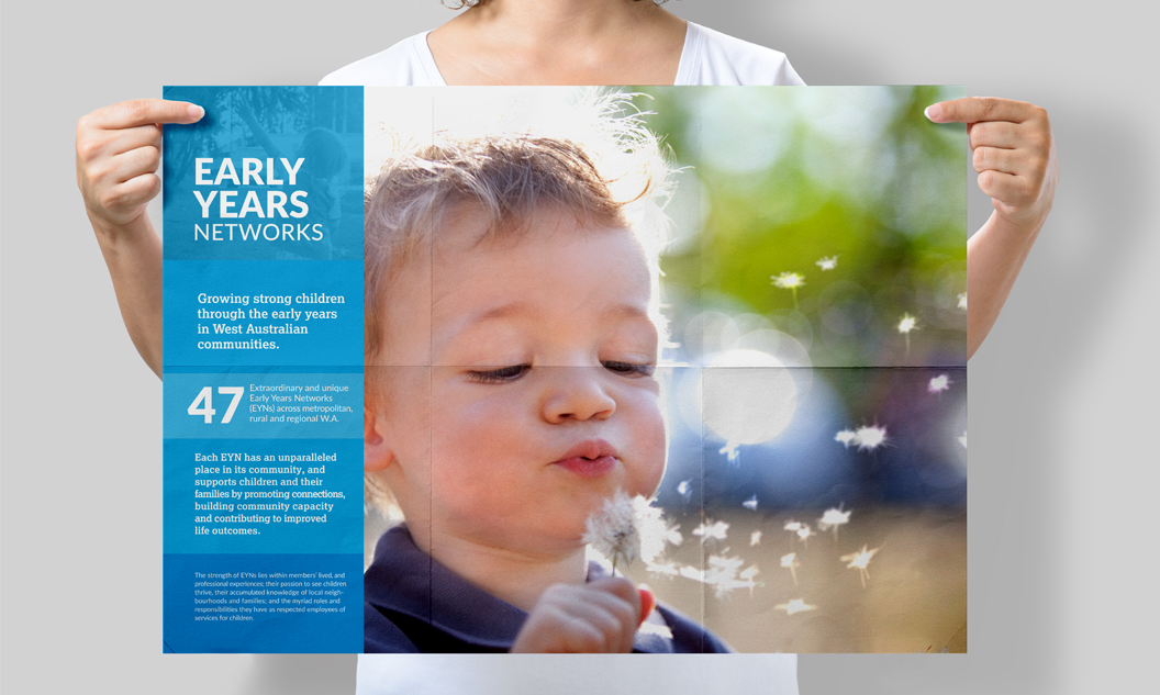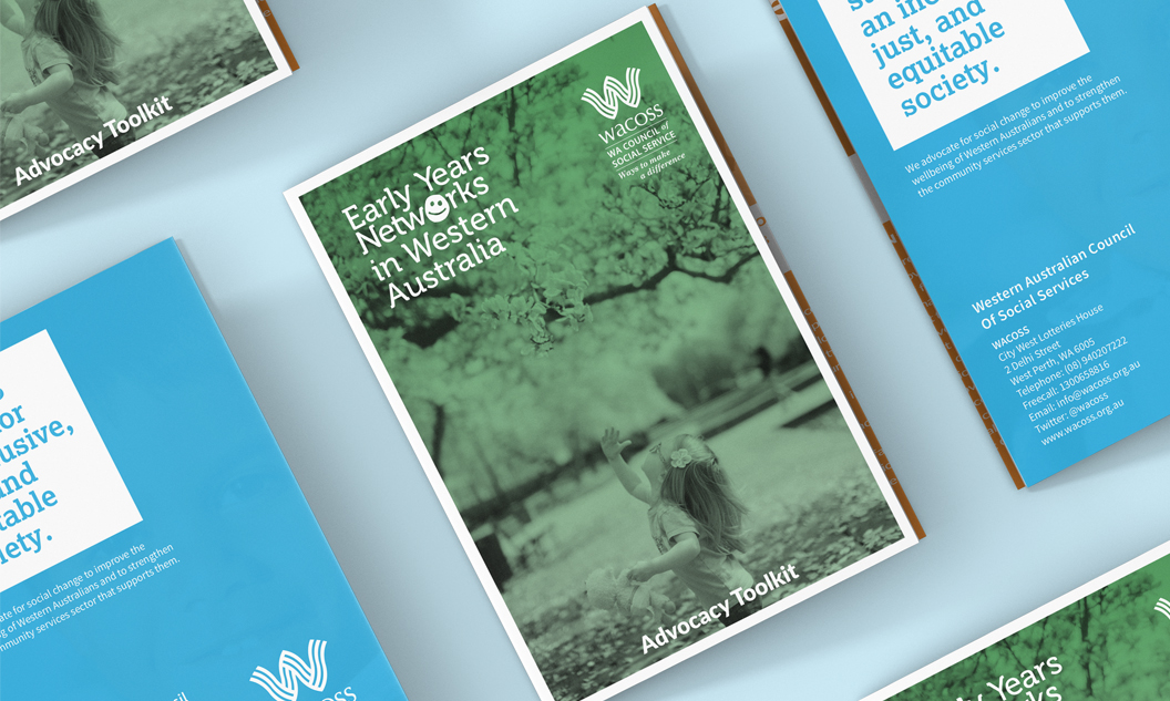 Tri-fold brochure design for Early Years Networks and WACOSS, showcasing their community impact and the benefits of joining.