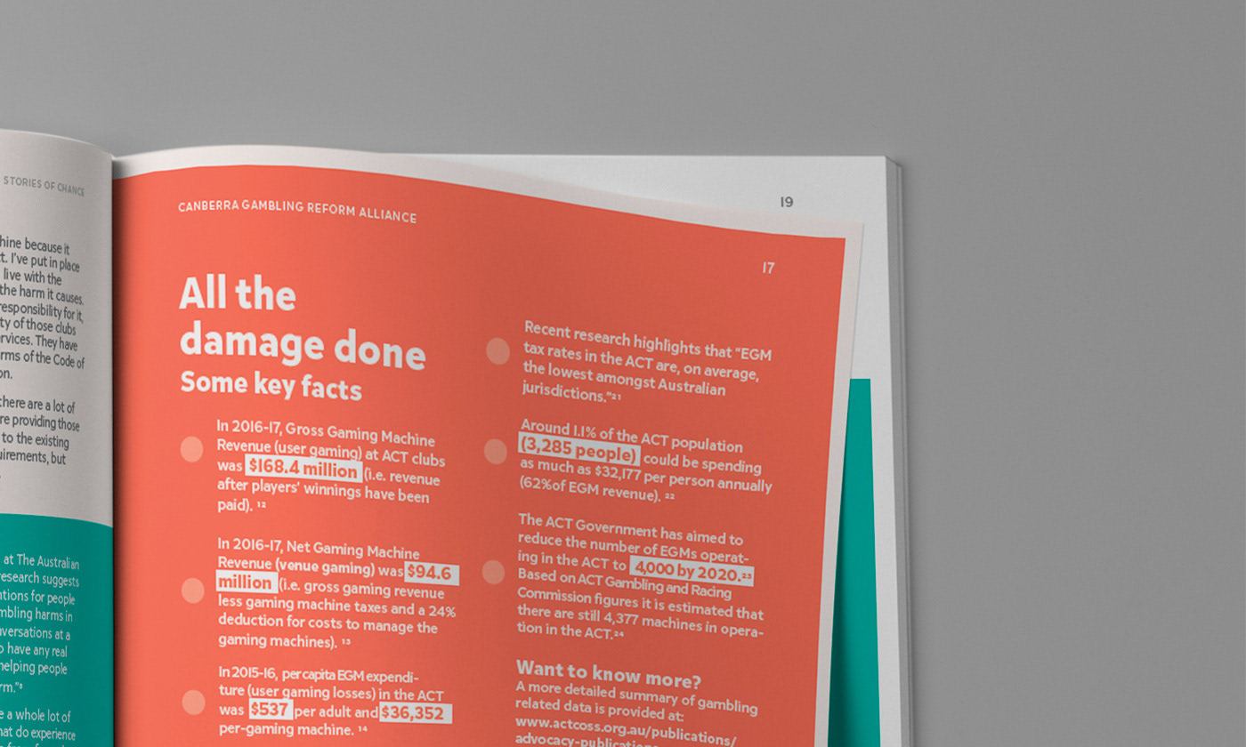A storytelling and data visualisation booklet on gambling harm and resilience in Canberraโs community.
